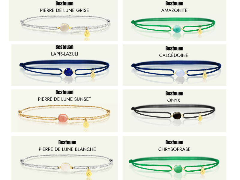 On aime la collection de bracelets cordon Bestouan, invitation à l’escapade en Méditerranée avec ses petits galets en pierres naturelles 100 naturelles qui apportent une touche de couleur brute et organique.