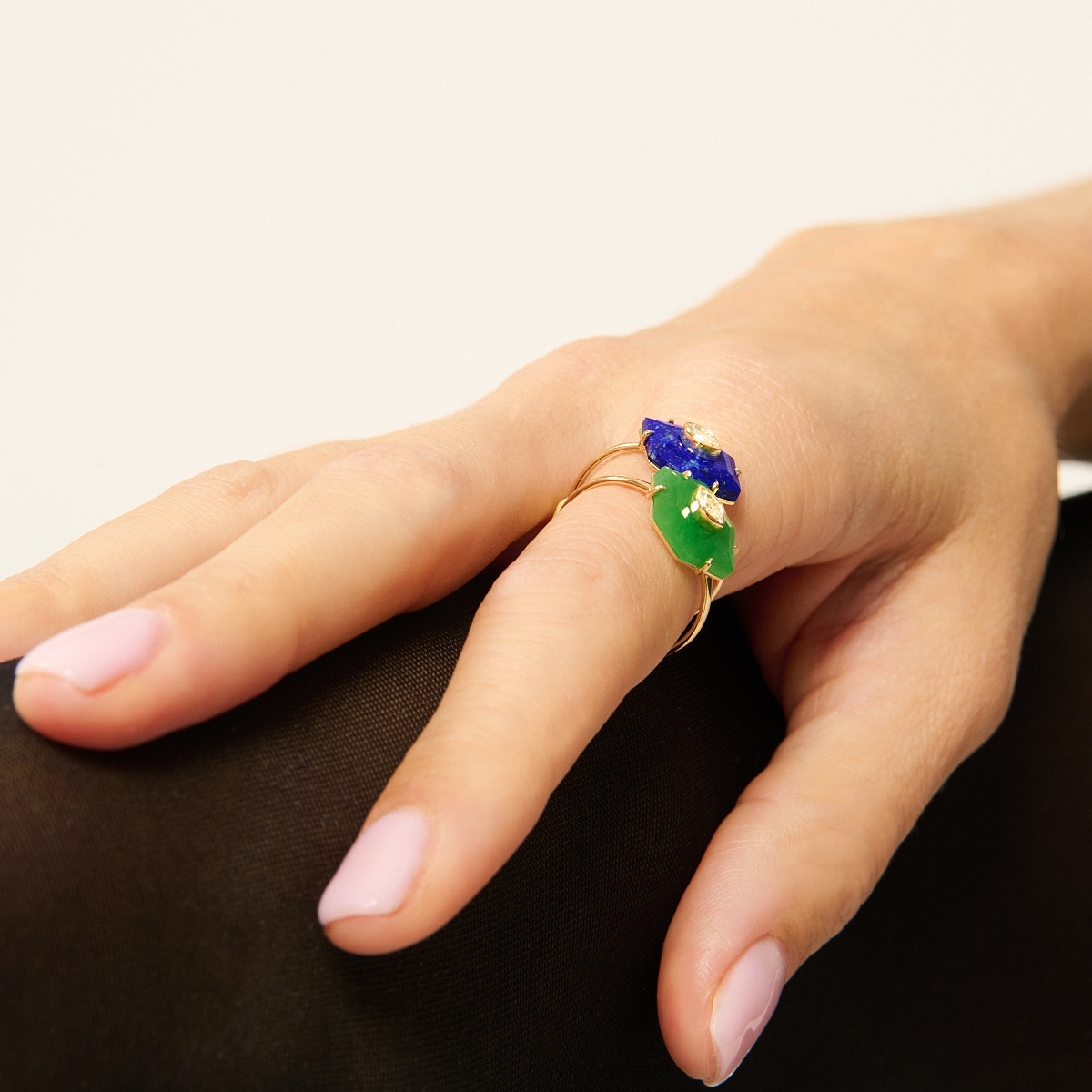 Réalisée en or 18 carats, la bague Azura unit puissance minérale et douceur féminine.