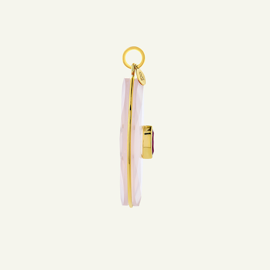 Découvrez Alba, une médaille en or 18 carats recyclé (Ecogold) où le quartz rose et le rubis rencontrent la lumière. Ce bijou célèbre une femme authentique, libre et guidée par son instinct. Avec sa silhouette ovale horizontale évoquant un regard protecteur, cette médaille allie douceur et caractère. En son cœur, un diamant étincelant symbolise la clarté de l’âme et la sincérité.
