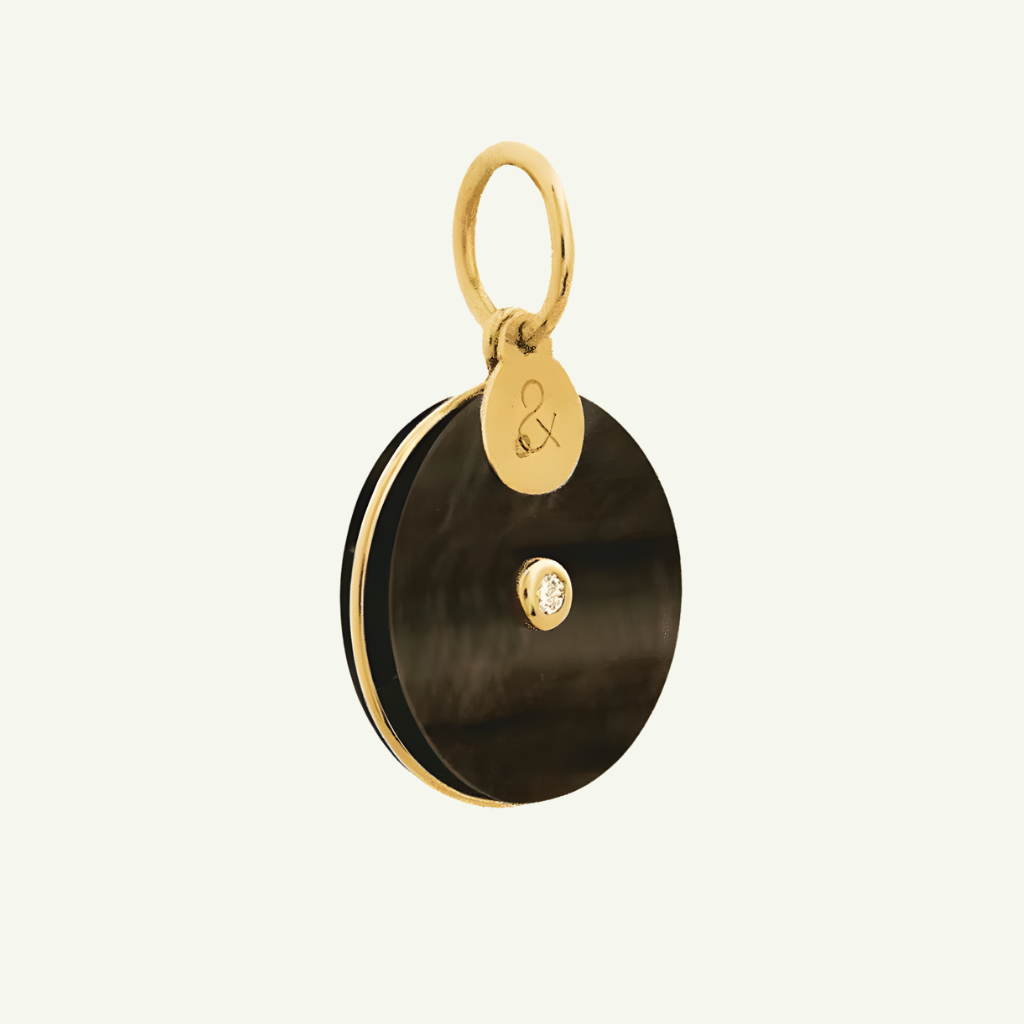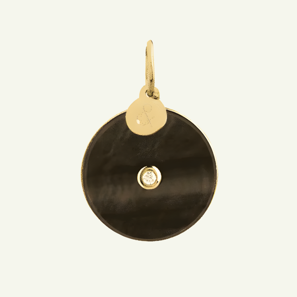 Mêlant mystère et douceur, la médaille PI en nacre grise et en or 18 carats Ecogold recyclé évoque l’équilibre subtil entre lumière et obscurité. Sa forme circulaire, symbole d’unité et d’harmonie, s’associe aux reflets changeants de la nacre pour inspirer une élégance discrète et profonde.