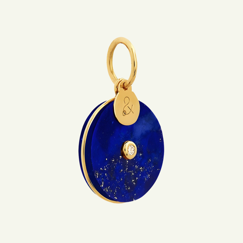 Symbole du ciel et de l’infini, la médaille PI en lapis lazuli et or 18 carats recyclé Ecogold invite à la clarté mentale et à la vérité intérieure. Taillée dans cette pierre de sagesse, elle ouvre l’intuition et renforce l’expression personnelle.