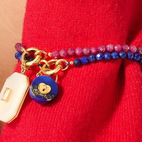 • Curb Gaspard 18 carat gold recycled man Lapis Lazuli Cord Cord Esperluette black diamond